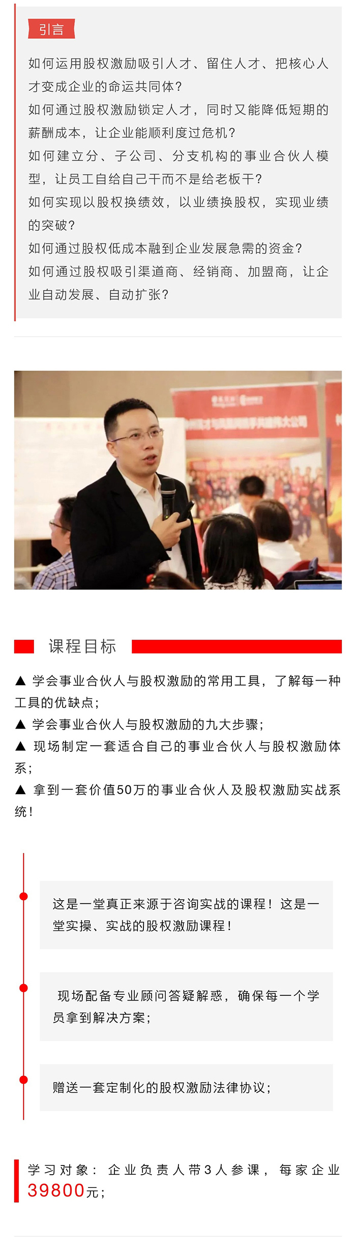 事業(yè)合伙人與股權(quán)激勵(lì)咨詢實(shí)戰(zhàn)特訓(xùn)營(yíng)