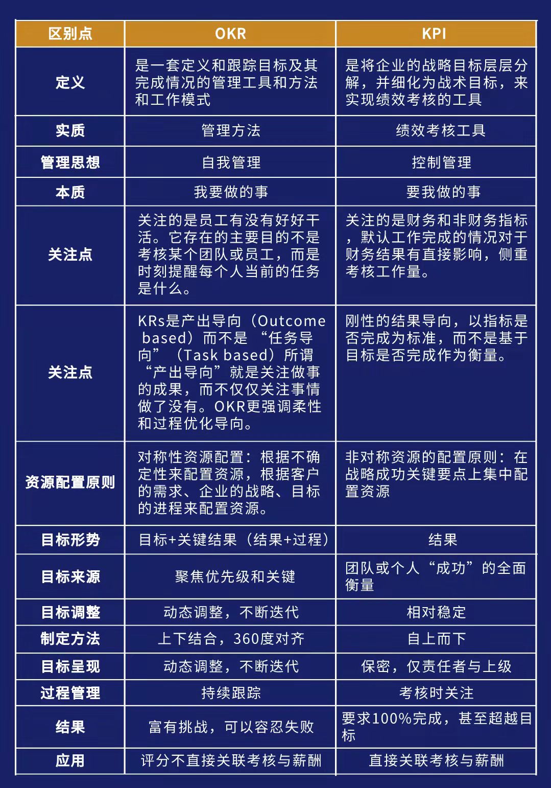 一張表看懂KPI和OKR的差異點(diǎn)對比