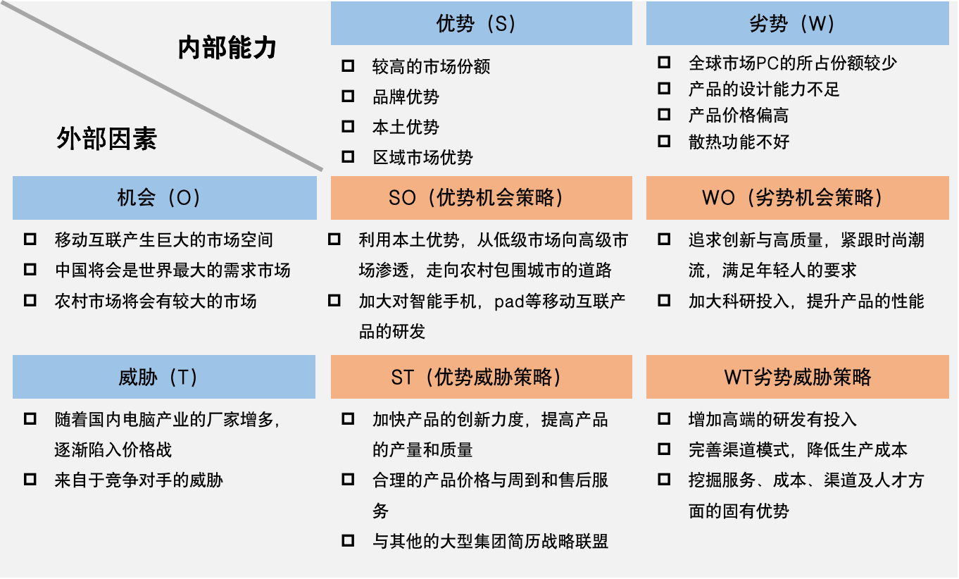 (2)品牌優(yōu)勢:在國內(nèi)市場處于領(lǐng)導(dǎo)者地位,特別在收購IBM PC業(yè)務(wù)后,品牌形象進(jìn)一步增強;